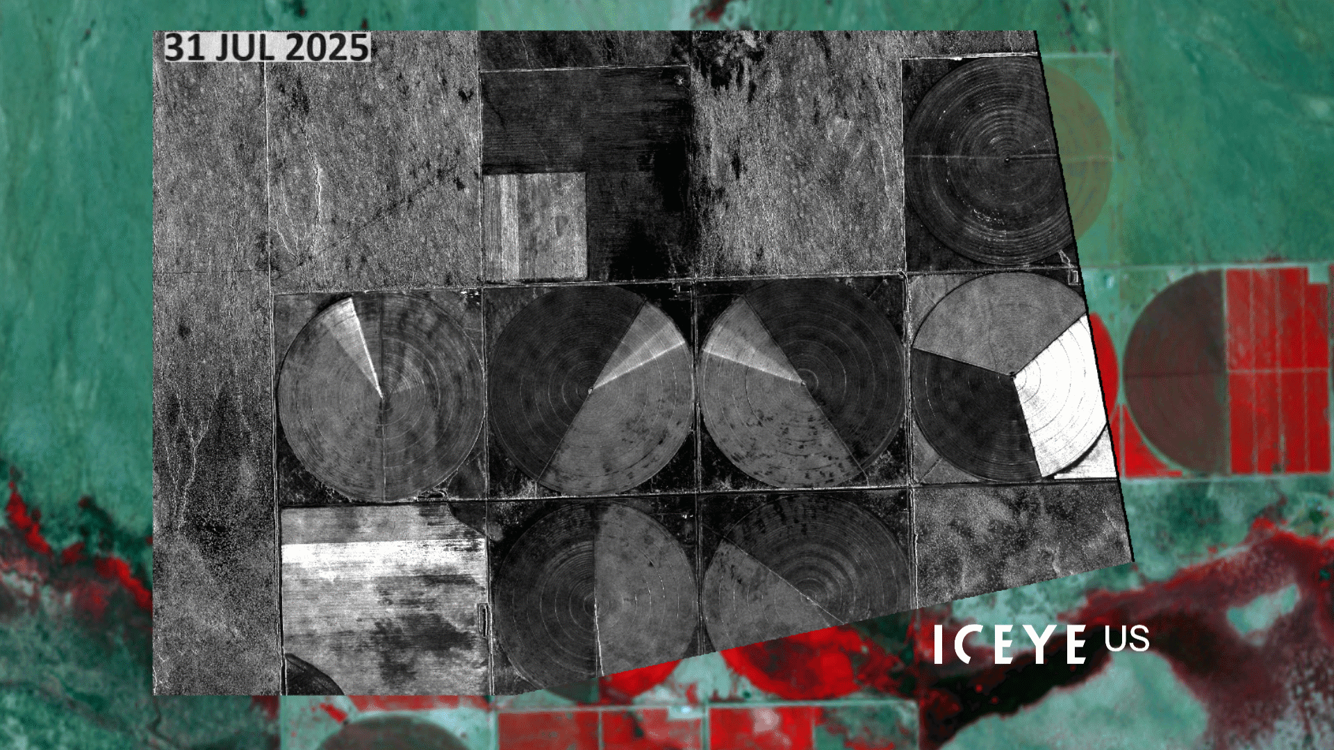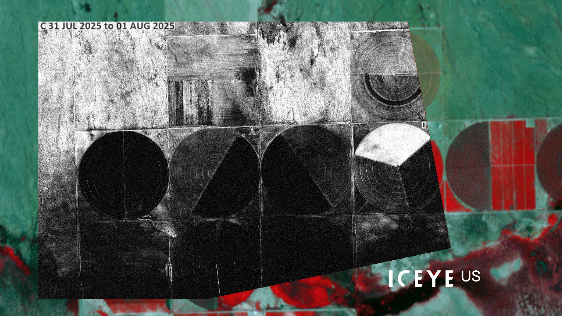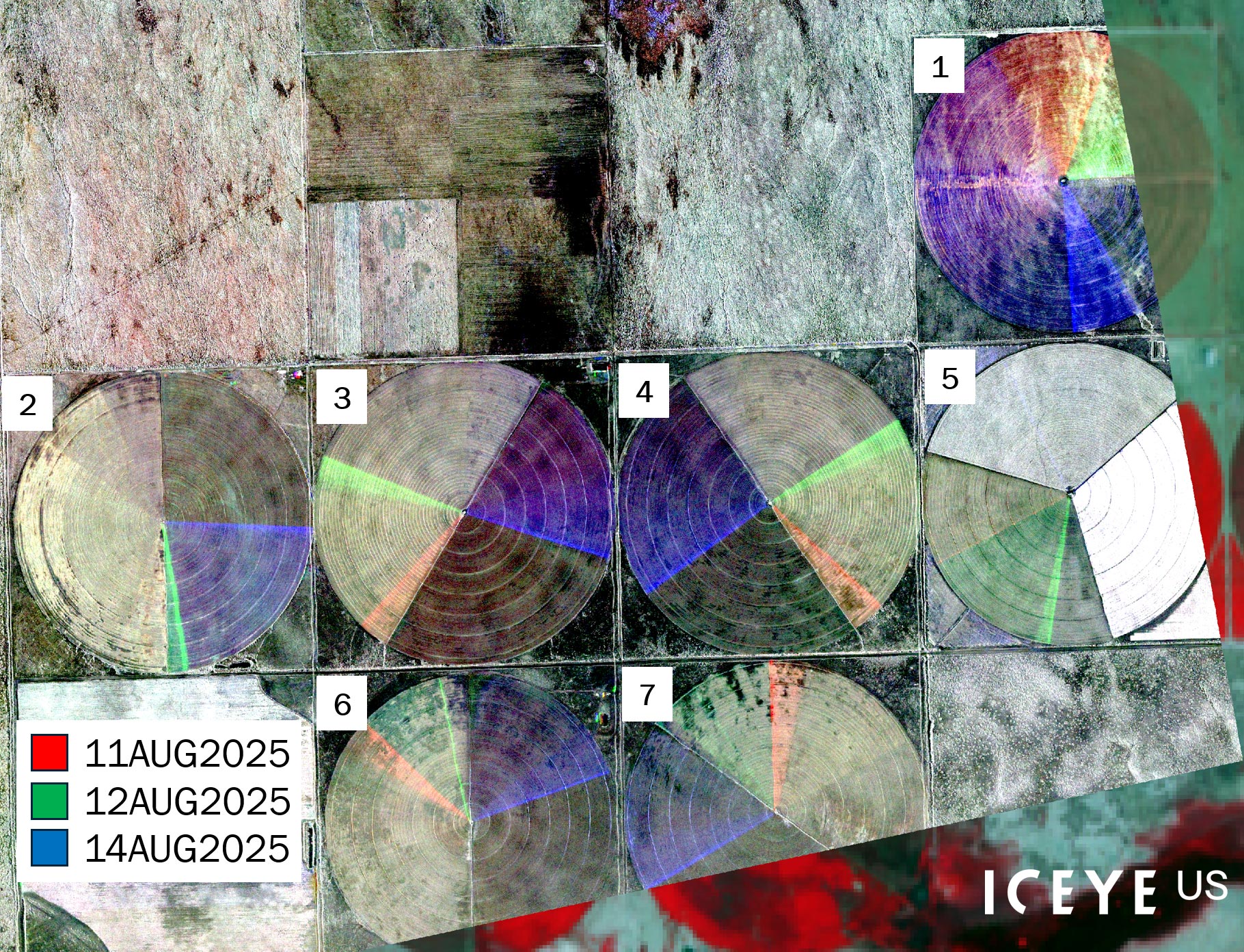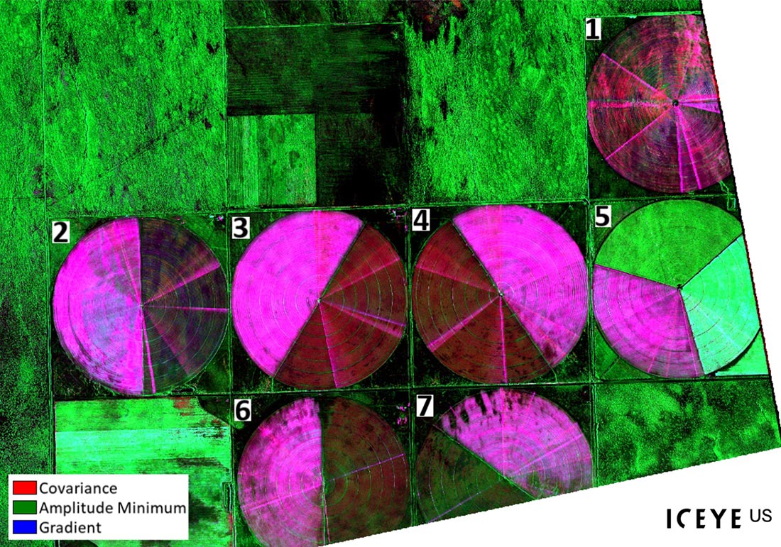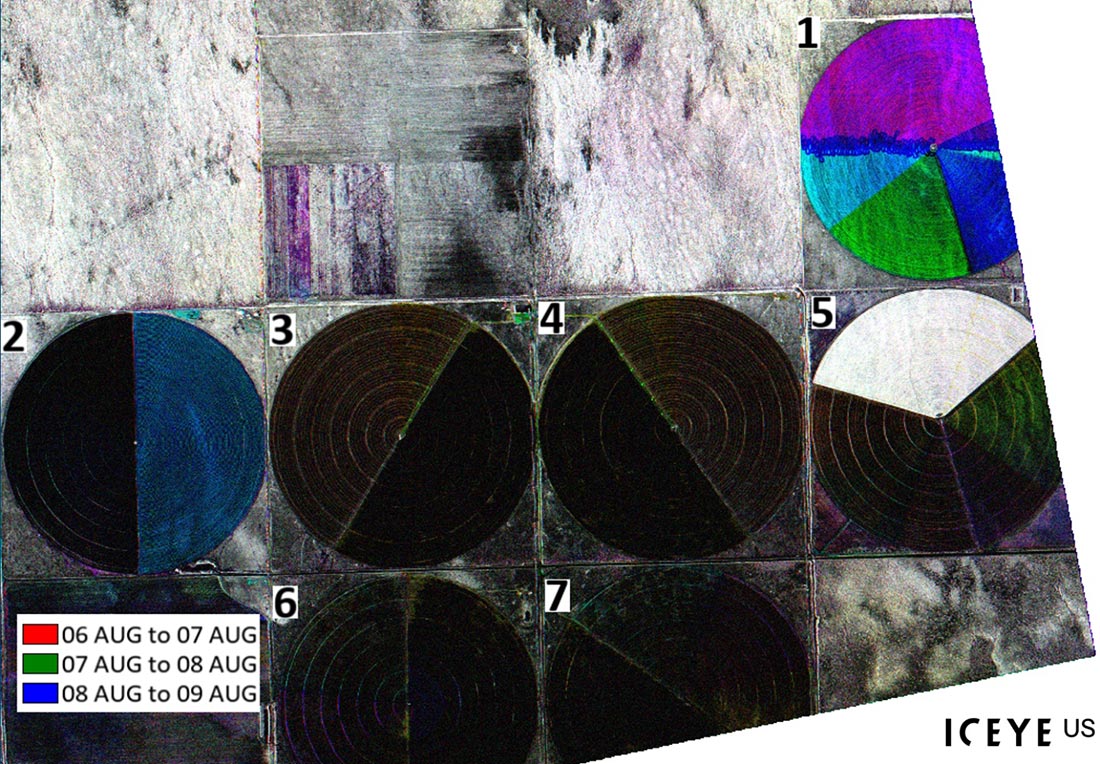 This post explores the complementary ENVI® SARscape workflows, (Intensity Timeline and Coherence Timeline) to reveal distinct insights when applied to a Daily Repeat GTR dataset. One example uses a 14-day temporal stack of spotlight mode SAR data from ICEYE US, collected daily between July 31, 2025, and August 13, 2025. The area includes center-pivot irrigation examples near the U.S.-Mexican border, making it ideal for studying dynamic agricultural environments. With daily revisit rates and consistent geometry, the dataset captures rapid changes while maintaining coherence needed for high-fidelity Coherence Time Series analysis.