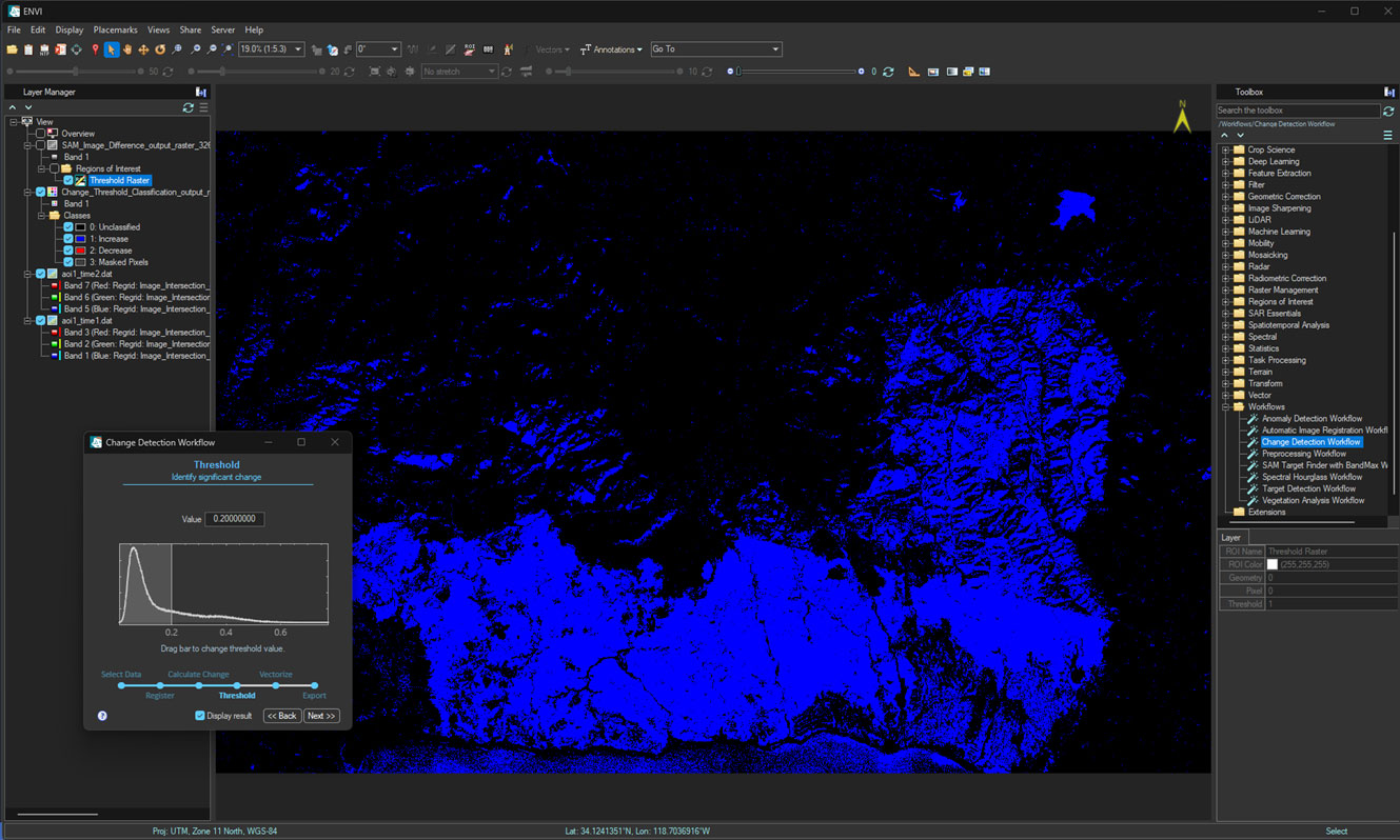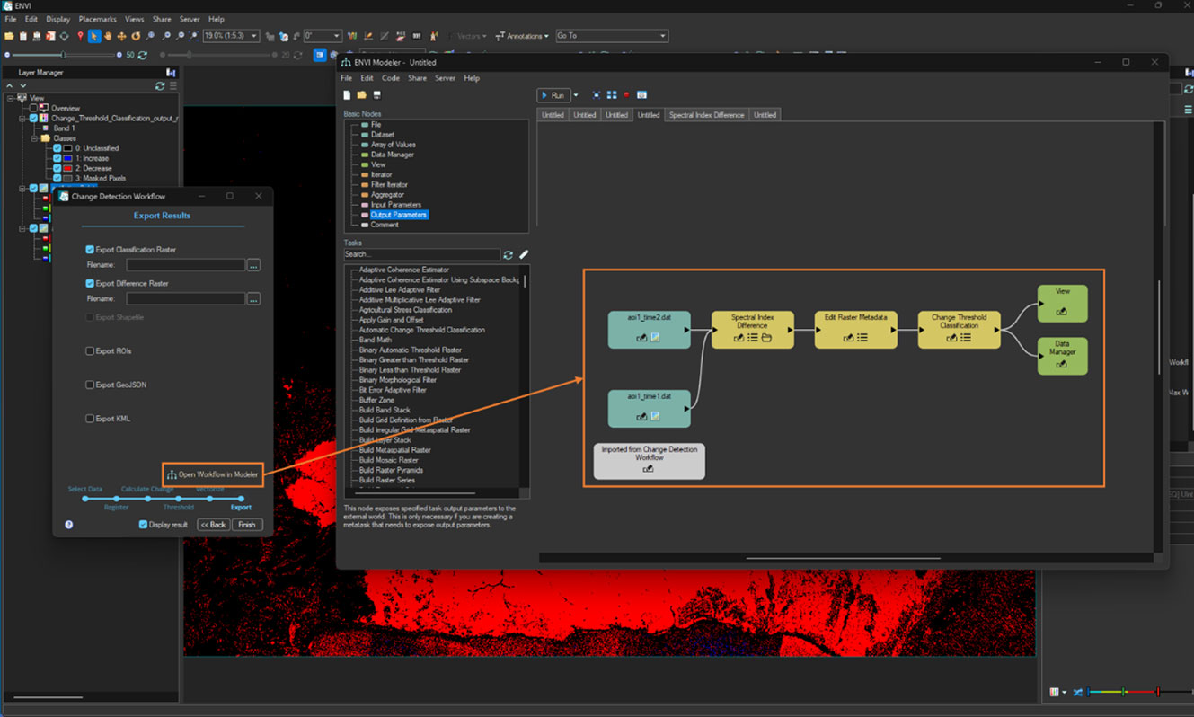 After you roll through this process a few times, it should become easier and quick to step through. It’s also a great way to learn how to create workflows from the ENVI Modeler and you may not need to use the interactive processes as a starting point in the future.