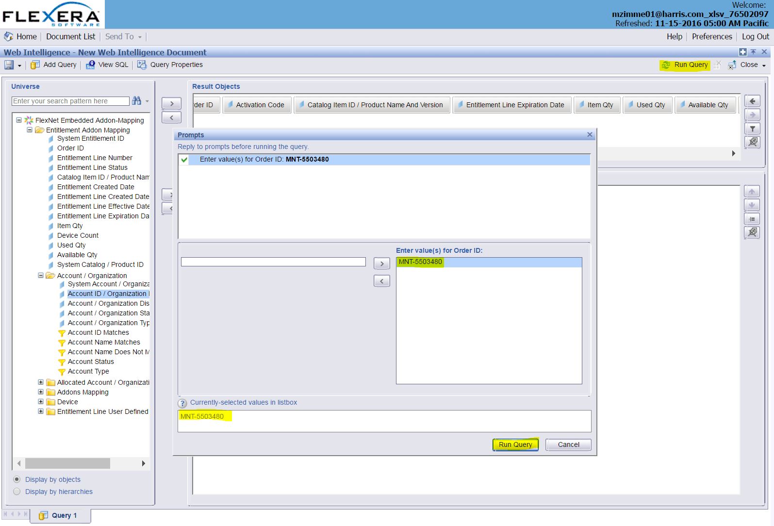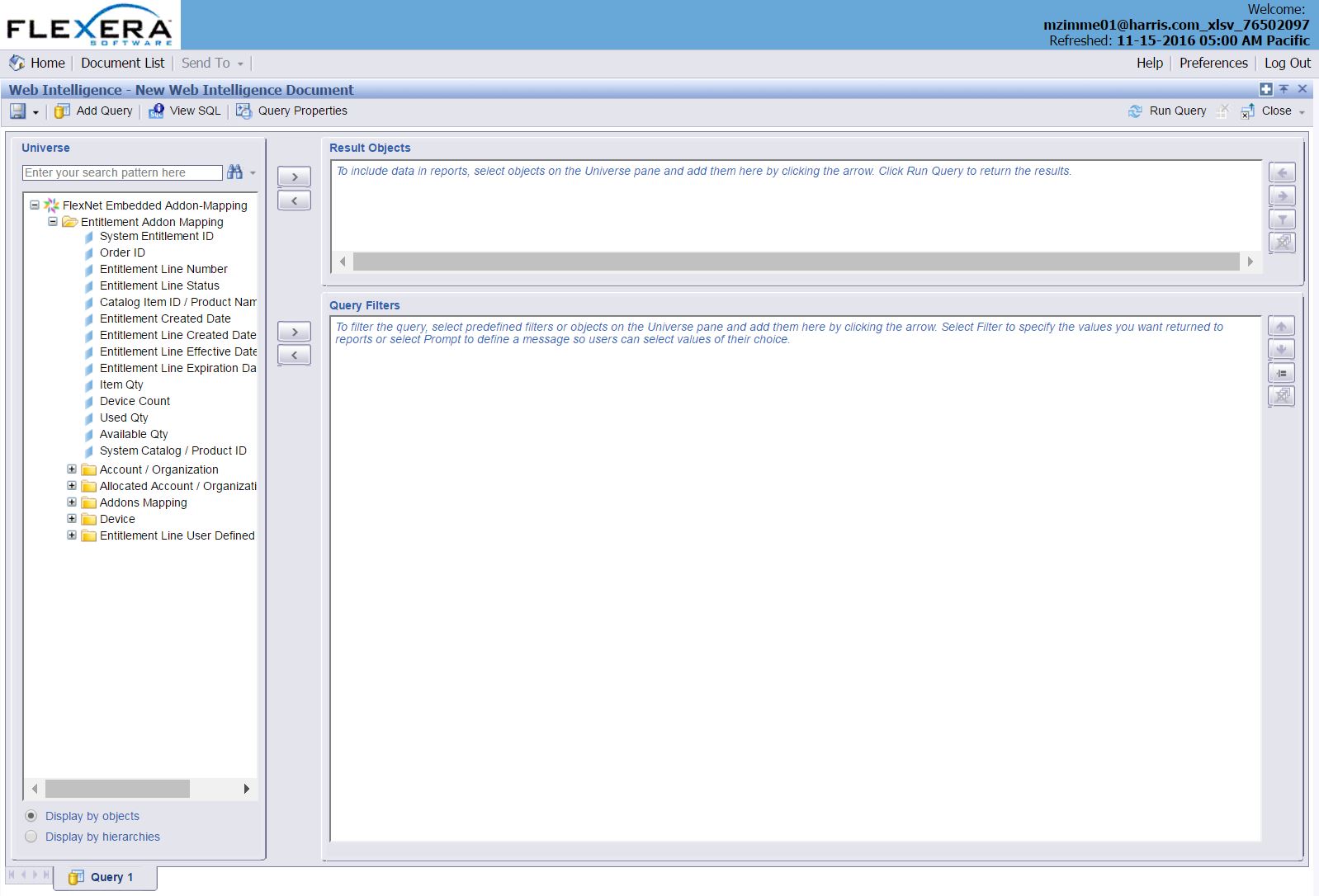 The FNO Reporter provides information on existing entitlements based on custom built queries.