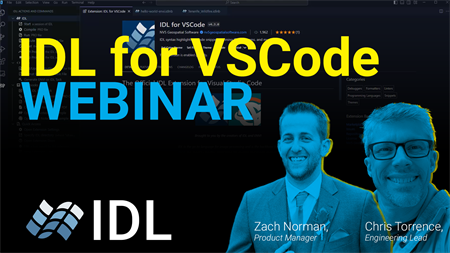 Monday, March 04, 2024 6668 0 Reimagine the Way You Program with IDL for VSCode It’s time to upgrade your coding environment! Watch this recorded webinar to get started with the IDL for VSCode extension; it’s free and it will modernize the way you work with IDL. Read more