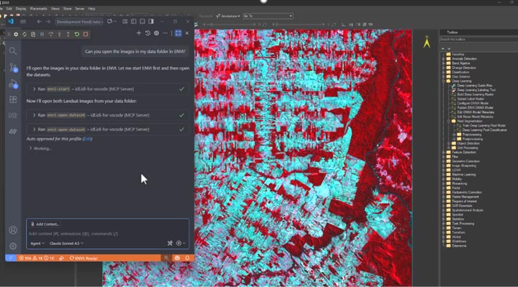 With ENVI Agent, simply describe the problem you want to solve and generate results without clicking buttons in ENVI. You’re an active participant in the process and can guide decisions, refine outputs, or adjust direction to optimize results.