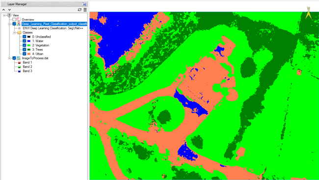 In this tutorial, you learned how to use ENVI Deep Learning to configure an externally trained ONNX model for object detection and pixel-based segmentation, then generate classification results within ENVI Deep Learning. This workflow demonstrates ENVI Deep Learning’s growing flexibility in supporting models trained outside its native environment whether developed in PyTorch, TensorFlow, or other deep learning frameworks.