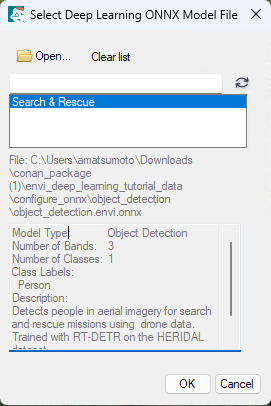 In this tutorial, you will learn how to integrate external deep learning models in the ONNX format with ENVI Deep Learning for advanced object detection and pixel-based segmentation processing.