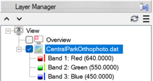 - Click the + button next to CentralParkOrthophoto.dat to see the bands that are used to display a true-color composite for this image.