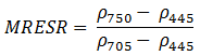 This index is a narrowband reflectance measurement that is sensitive to changes in chlorophyll concentration. Increased chlorophyll concentration broadens the absorption feature and moves the red edge to longer wavelengths.