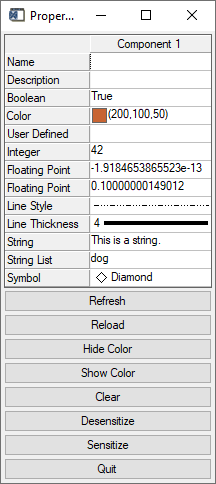 - The Reload button reloads the data specified in LoadValues into the property sheet, using the SET_VALUE keyword to WIDGET_CONTROL.